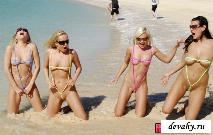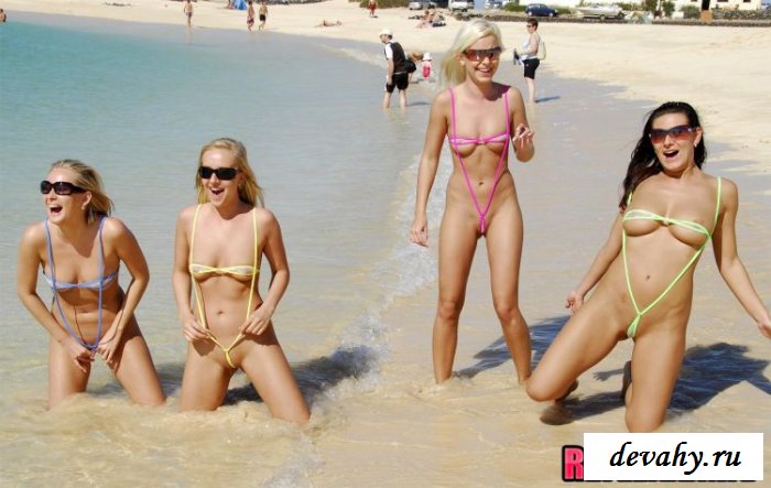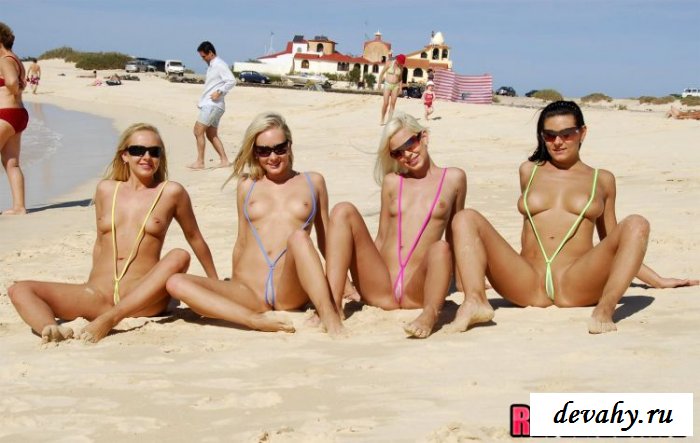 Пляж является настоящим источником лёгкодоступной женской красоты. Ведь именно тут можно беспроблемно понаблюдать за молоденькими телами раздетых крох. Четыре подруги сегодня оказались самые востребованные среди всех, так как они напялили на себя настолько открытые купальники, которые лишь слегка прикрывают их голые интимные прелести. Понятное дело, что парни не смогут просто пройти мимо, а обязательно возьмут и начнут пялиться пронзительными взорами на этих обнажённых кралей.