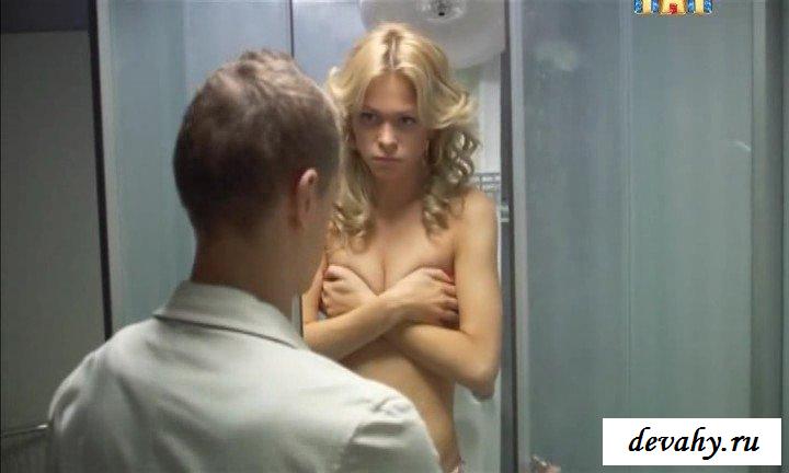 Актриса популярных сериалов «Барвиха» и «Универ» Анна Хилькевич – безусловно, очень красивая девушка. Многие представители мужского пола во время просмотра этих известных сериалов мечтали увидеть Анну в голом виде, и теперь есть такая возможность. Красавица снялась в эротической фотосессии, где предстала хоть и не полностью обнаженной, но все же показала голые части тела. На фотографиях блондинка позирует в одном нижнем белье, а на отдельных кадрах – без лифчика, просто прикрывая сочные груди руками. Всё это актриса сделала для того, чтобы мужчины смогли получить огромное удовольствие от увиденного.
