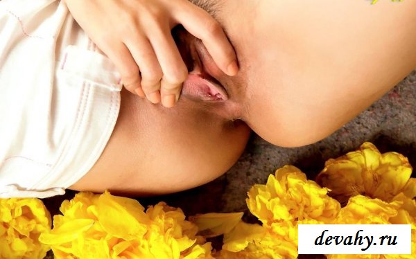 Странно конечно, но практически у всех азиаток не бритые пезды, чем это вызвано не понятно. Хотя в нашем сегодняшнем случае ничего, волосы только на лобке, а пилотка еще не плохо выглядит. Телка лежа на желтых цветах покажет хорошенькие сиси с раскрытой киской.