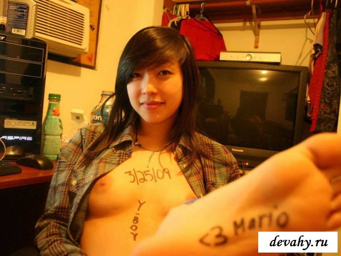 Азиатка захотела по экспериментировать со своим телом и удостовериться, что есть на него еще любители трахнуть где-нибудь. Для этого она расписала свое тело и наметила стрелками куда следует ебать. Причем данный процесс она запечатлела на камеру. А перед этим она фоткала свои голые сиськи и манду, а после встав раком, раздвинув булочки, расслабилась и приготовилась ждать упругий член. Разнообразие мест только и говорит о том, что не нала для себя подходящий инструмента для удовлетворения похоти