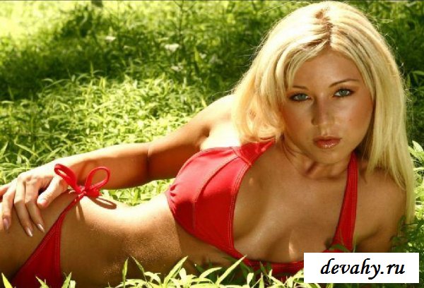 Длинные волосы ниспадают на плечи и расстилаются по загорелому телу молоденькой шлюшки. На ней красное откровенное бикини и она не боится ходить в лесу в таком виде, а может она, как раз и ищет приключения на свою жопку. Тем более, имея такие буфера это она сделает быстро.