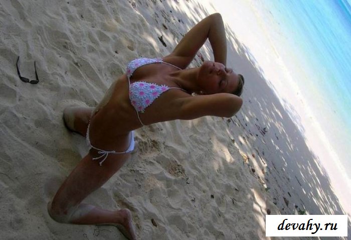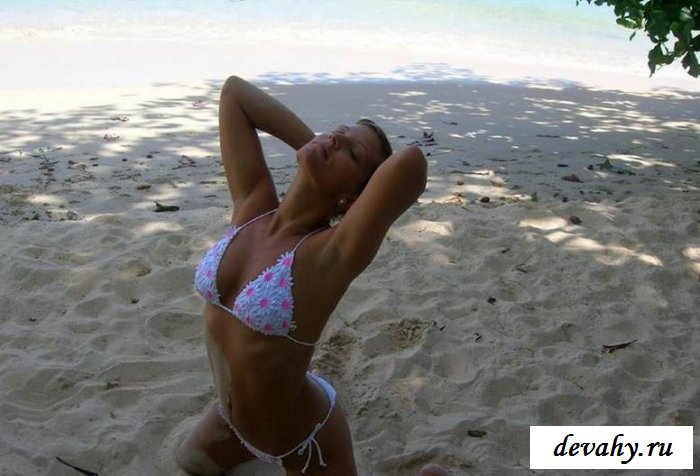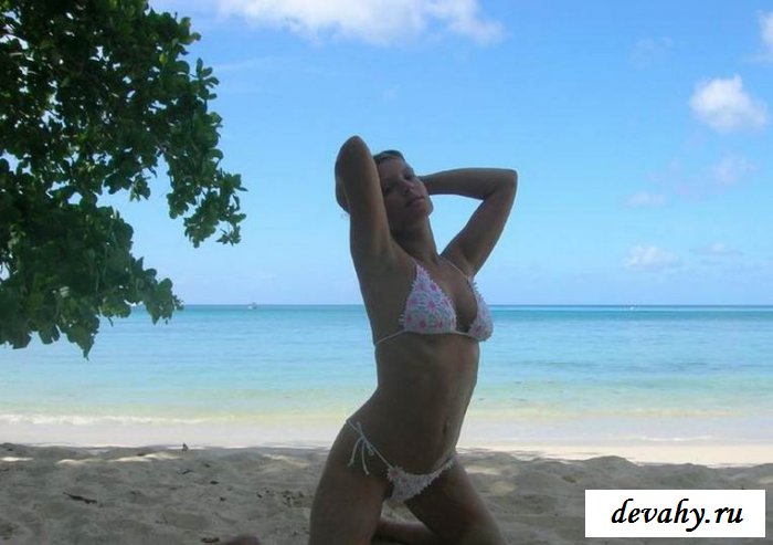 Белое бикини с розовыми цветочками отлично подходит к золотистой коже девки на пляже. Эта стройная девушка отменно выглядит на эро снимках. Хорошие формы, но пока рано и то, что скрывается под тряпицами мы вскоре увидим. Понемногу она становится отважней, и камера берёт выгодным ракурсом самые аппетитные зоны фигуры. Большое фото обнажённой груди – невероятный вид, от которого только одни мысли по скорее отправиться на берег океана и как можно быстрее присоединиться к этой подружке