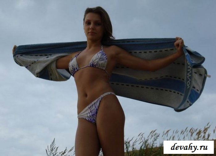 Хорошенькая русская девчонка в купальнике выглядит совсем молоденькой. Может даже некоторым она сгодится в дочери. Но это по фиг, главное есть, что оценивать, а возраст не волнует. Ее молодые грудки скрывает бюстгальтер купальника, но ничто не может спрятать их свежей такой упругости. Треугольник небольших плавок скромно прикрывает юный лобок. Нежную кожу жаркими поцелуями покрывает теплое солнышко. Как думаете, такая эротичная крошка подарит мгновения или вечность какому-нибудь ушлепку или настоящему мужчине.