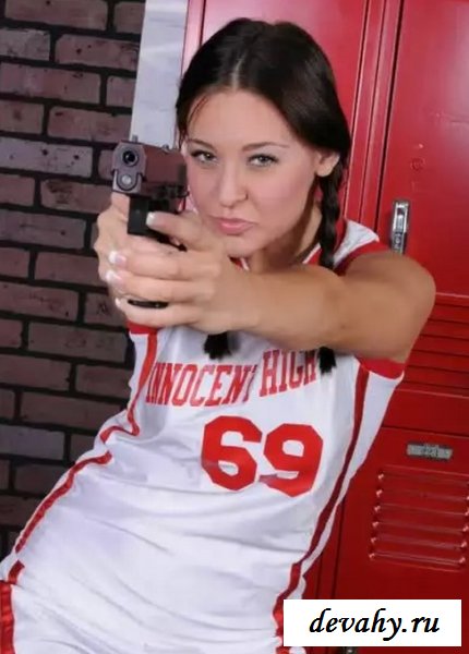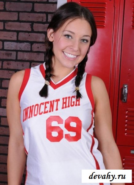 Веселая симпатичная болельщица с хорошей спортивной фигурой собралась устроить пацанам из команды настоящий праздник. Она зайдет в мужскую раздевалку и там разбрасывая свою форму в разные стороны покажет голодным самцам аппетитные сиськи с голой жопой.