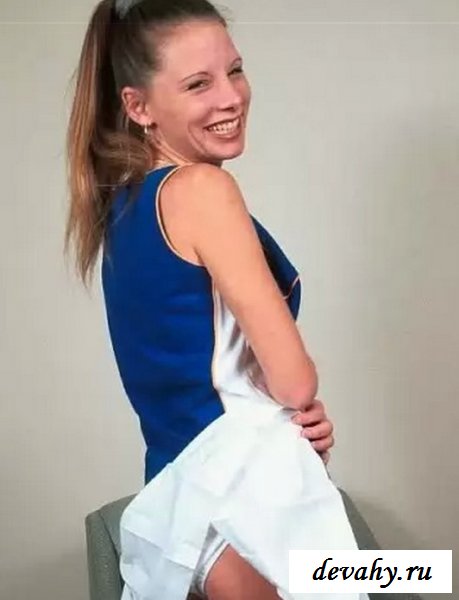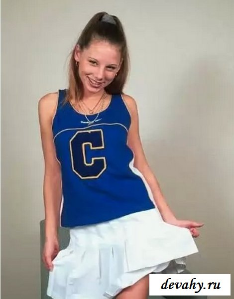 Какой-то умный человек придумал классную форму для команд болельщиц, футболки и майки это фигня, а вот откров6енные коротенькие юбочки, это да, классно. Молоденькая девчушка в синей форме, собирается на игру, н прежде, будет крутить попой и демонстрировать беленькие трусики.