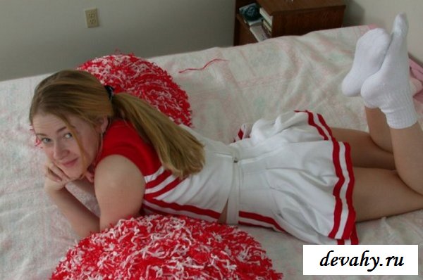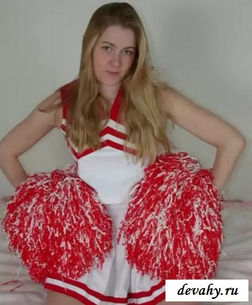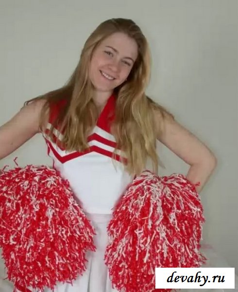В красно-белой форме расположилась горячая деваха из группы поддержки. Она запросто, практически не стесняясь начнет показывать свои ровные ноги с классной задницей. Своим поведением ей легко завести зрителя, особенно после голых сисек и снятия трусов с сердечками.