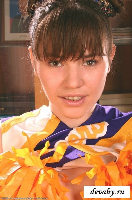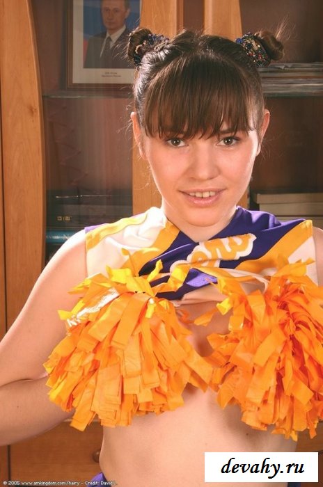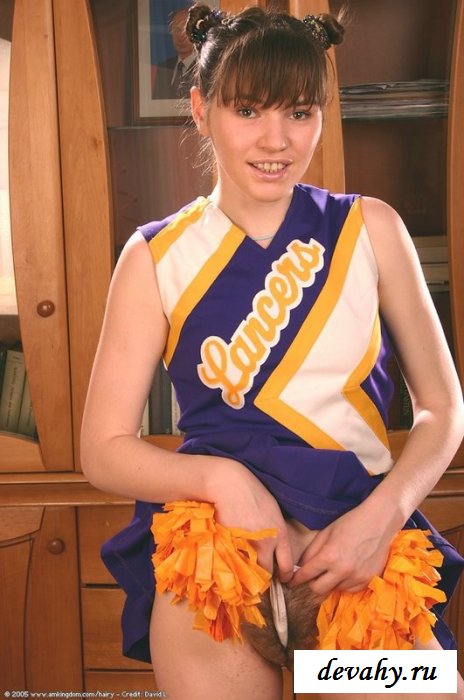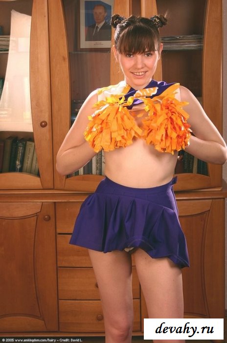 Болеть за своих можно совершенно разными способами. Большинство, конечно, это делают стандартно, выкрикивая громкие возгласы в честь своих спортсменов. Но вот эта раздетая фанатка в синей форме поступает совершенно иначе. Ведь у неё ненасытная развратная душа, которая буквально заставляет голую рыбку вести себя очень похабно. За счёт этого мы даже смогли рассмотреть волосатую обнажённую киску у милой болельщицы, в тот момент, когда она задрала свою короткую юбочку.