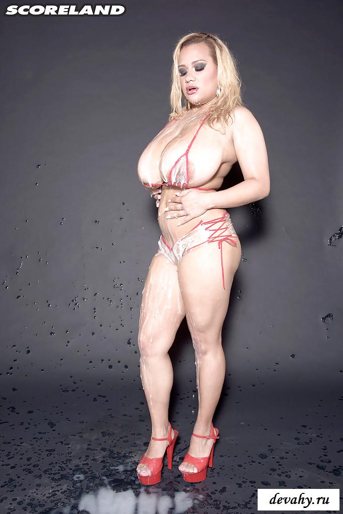 Глядя на эту сексуальную блондинку с большими сиськами – просто не реально сдержать возбуждения. У страстной леди действительно впечатляющее тело. Не мудрено, что её парень не может находиться с ней в спокойном состоянии и постоянно буквально поливает её спермой. Блондиночка в кончине охотно принимает на себя страсть партнера. Тот в свою очередь не спрашивает девушку, когда ему устраивать буккаке и неизменно обдаёт пышнотелую красотку своим белком, словно из шланга.