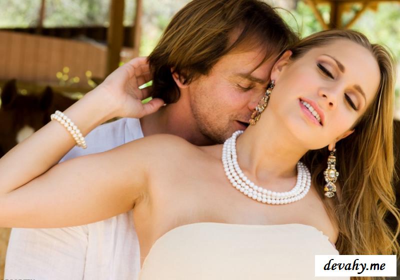 Обаятельная и совершенно голая девушка очаровывает знойного чувака не только милой улыбкой, но и просто огромными мягкими дойками, от которых горячий красавчик без ума. Дама любит отличный жаркий секс на свежем воздухе, но перед половым актом предпочитает страстно делать минет и облизывать хуй партнера. Ласковая и достаточно опытная фифочка с огромными дойками и мокренькой писькой стонет от кайфа, когда раздвигает ляжки и принимает стоячий член любимого в мокрую письку.