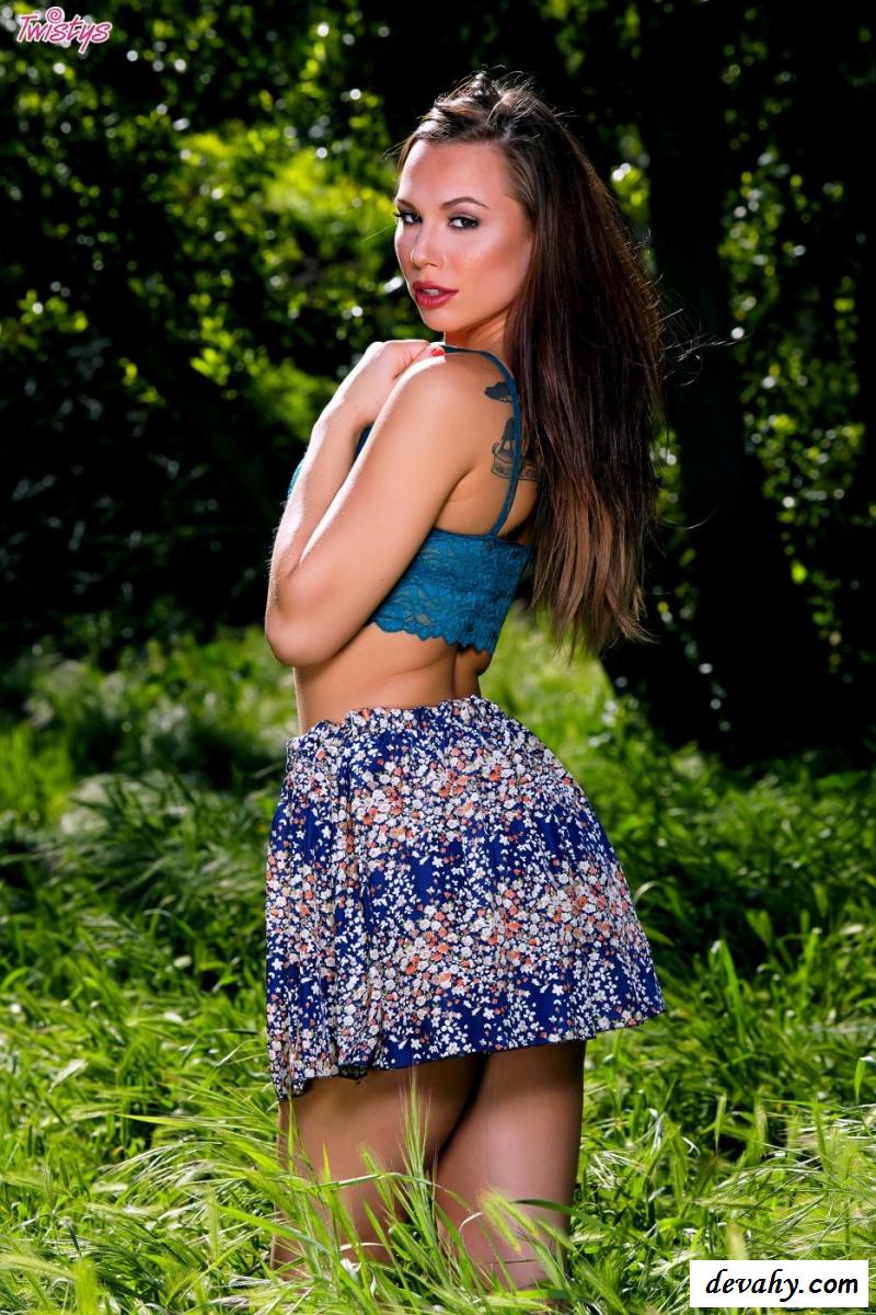 Раздетая сука однажды приехала за город и решила прогуляться по полю, где росла зеленая трава. На этой прогулке развратница без трусов вела себя очень раскрепощенно. И вот теперь когда она остановилась на тихой поляне, то девушка сразу же намекнула своему ухажеру, что на ней сейчас нет никакого нижнего белья и мужчина сразу же начал приставать к ней. А она специально для него начала оголяться дальше, чтобы показалась нежная вагина.