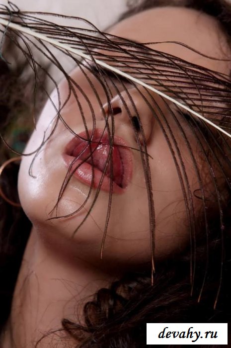 В одних трусах брюнетка как ребенок радуется перьям птицы фазана, где она их взяла не понятно, может надергала где, это не важно. Главное красотка сейчас начинает этим пером ласкать свою кожу, плавно водя по телу, она будет щекотать свои плечи, спустившись немножко погладить грудь с нежным соском, проведет по животику с пупком. Одного перышка ей будет недостаточно и взяв еще несколько продолжит сладкую негу, при этом страстный стон огласит комнату.