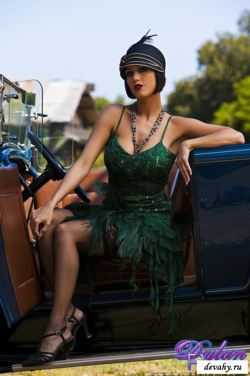 Очень высокомерная и невероятно гламурная Dylan Ryder подъехала к собственному роскошному дому на крутом автомобиле и в очень красивом платье, желая создать эффект и произвести впечатление на требовательных мужчин. Фифочка осталась раздетой на свежем воздухе и продолжила эффектно позировать с голой грудью более откровенно и по - настоящему красиво. Стройная фифочка в крутой шляпе и на каблуках выглядит в этот жаркий день бесподобно, поэтому и позволяет себе много вольностей.