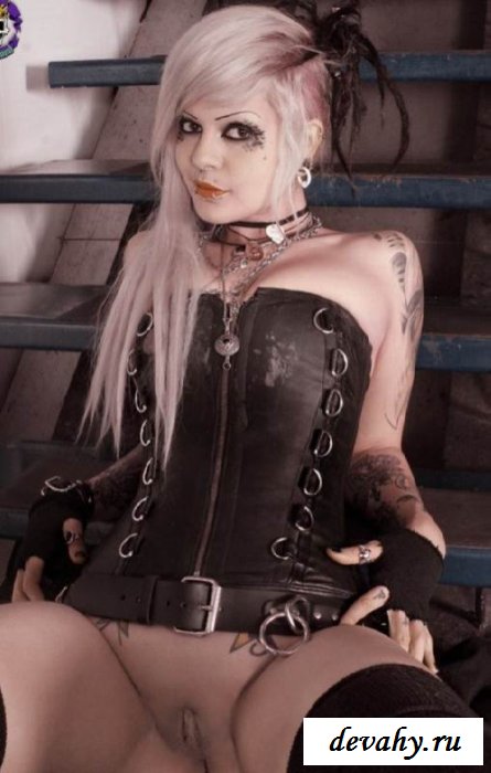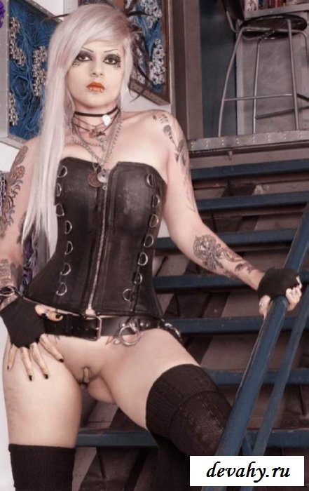 Эта девочка нонконформист или просто эмо, обыкновенный внешний вид точно не для нее. Вы видите деваху в костюме смелой готки. На теле шлюхи брутальные татуировки, бесчисленные готические аксессуары. Видно сразу - это дня нее даже не игра. Она снимает черные крохотные шортики и останется в одних только кружевных трусишках, едва прикрывающих мандушку. Дабы ощутить полную свободу тела, она сбросет их. Какая она у нее рабочая! На фоне этого антуража ее жопка смотрится как частичка света во тьме