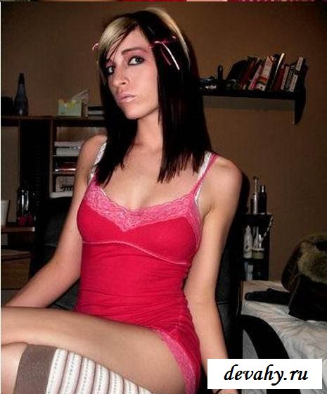 С экстравагантной причёской деваха решила показать друзьям фото из своей личной коллекции. Стоит заметить, что это перед нами совершенно не простые скромные снимки, а настоящие эротические и сексуальные. Эмочка покажет, как она возбужденно снимает с себя одежду, под которой нас ждет превосходная юношеская грудь. К тому же девочка обладает замечательной стройной талией и обаятельными глазками, которые так мило соблазняют. На неё вот смотришь и по не воле начинаешь восхищаться её прелестями.