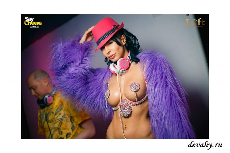 Обнаженная Dj MILANA радовать фанатов своей музыки не только качественными треками, но и своим шикарной внешностью. Эта девушка диджей сегодня станет развлекаться на сцене, демонстрируя свое отличное тело во всей красе. И, несмотря на то, что при выступлении ее соски слегка прикрыты, форма ее грудей полностью видна и поэтому фанаты этой телочки смогут насмотреться на прелестное тело Юли. Именно в таком виде она любит постоянно выступать, демонстрируя свое роскошное тельце.