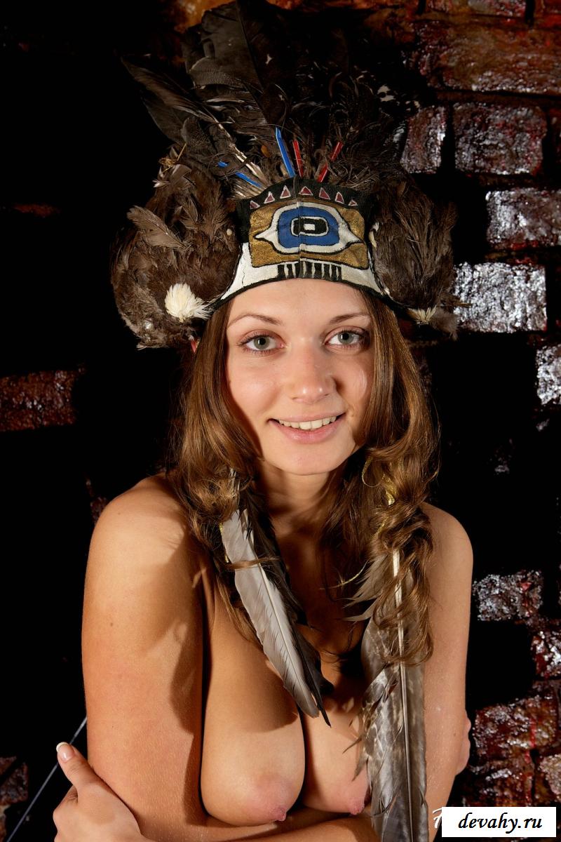 Сексуальная индейка с необычным головным убором однажды заперлась в небольшом домике, где на полу была простелена медвежья шкура. И вот теперь прямо там девица стала сексуально ласкать свою голую широкую пизду, которая от этого безумно возбудилась. И по этим большим половым губкам девица водила пальчиками до тех пор, пока не испытала оргазм и из нее не стала вытекать жидкость. А после оргазма она повернулась задком к камере, чтобы раздвинуть как можно шире упругие булки.