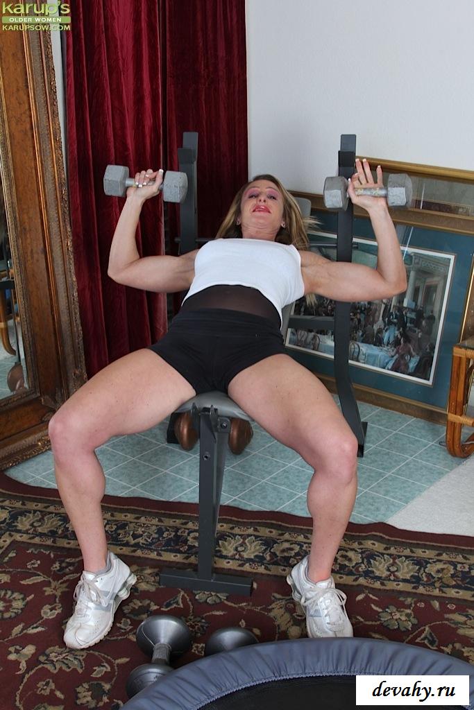 Молодая спортсменка, которая уже успела добиться очень привлекательного тела теперь оголяется перед всеми желающими. И вот когда завершилась ее очередная тренировка, блондинка стала демонстрировать раздетую мускулатуру и интимные места. Так сучка делает очень часто после качалки, чтобы посмотреть на результат, которого ей удалось достигнуть при таком упорном труде. Также культуристка заметила, что за последнее время хорошенько подкачала пизду.