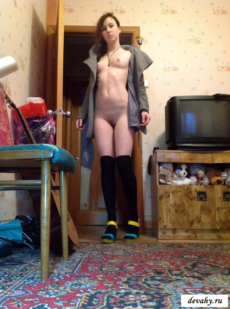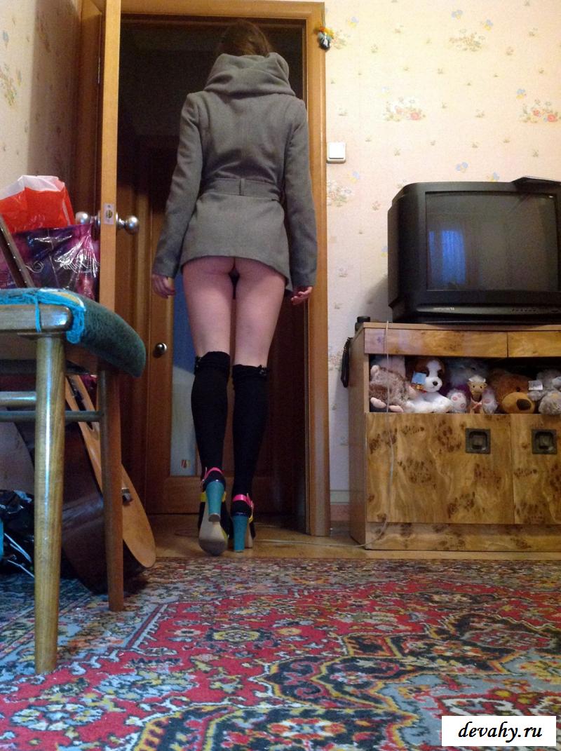 » Обнаженная дряная сучка ходит без одежды в пальто