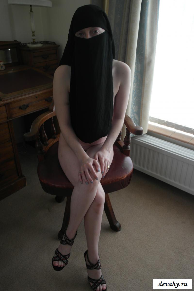 Похотливая зрелая исламка решила показать, как смотрится она без одежды. И вот теперь мы можем полюбоваться голым телом этой развратной женщины, которая не стесняется сидеть без трусов в парандже и показывать свою не очень опрятную внешность. Длительное время на снимках можно было наблюдать, как эта мусульманка просто сидит и прикрывает бритую пизду, но затем она решилась и встала с кресла. В результате чего можно было наблюдать ее вагину во всей красе, которую она пыталась раздвинуть как можно шире.