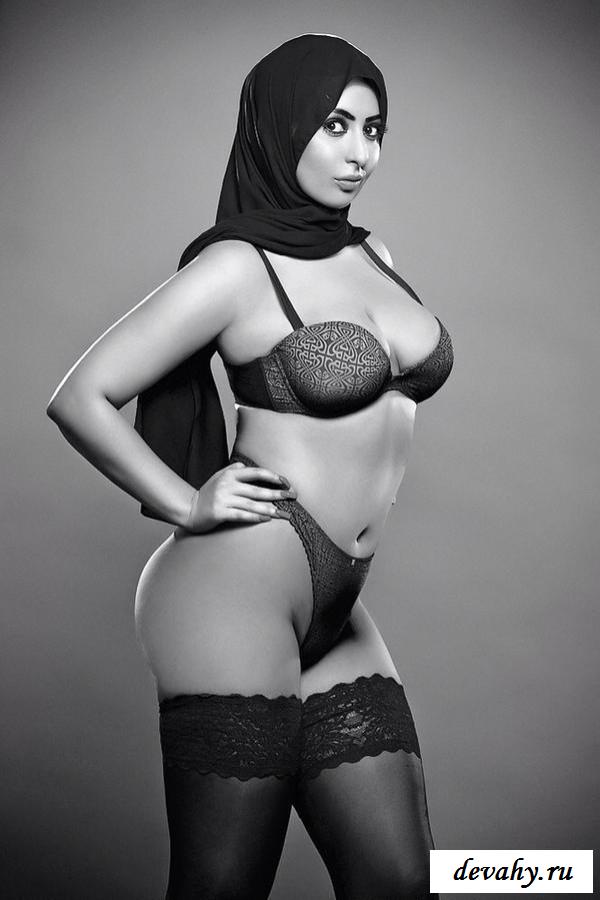 Частные фото голой мусульманки выглядят просто идеально, особенно когда на снимках она поворачивается к камере своим идеальным задком. И вот теперь мы можем наблюдать за тем, как эта восточная девушка с шикарными большим глазами раскрывает титьки и ягодицы, чтобы возбудиться прямо перед камерой. Особенно шикарно смотрится фотография, где эта брюнетка в хиджабе и тонких черных стрингах стоит рачком и старается как можно шире раздвинуть большие булки.