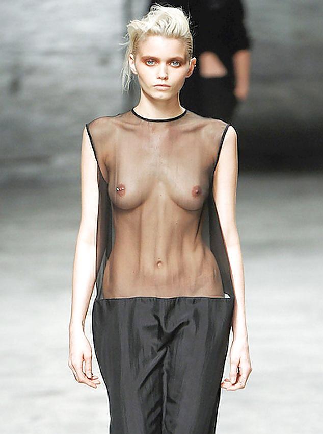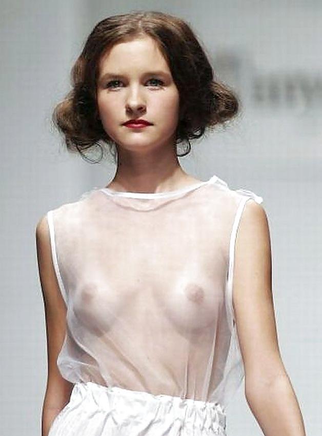 Порой, чтобы привлечь к своей персоне многочисленное внимание молоденькие модели готовы идти на отчаянные поступки. В этой фотосессии продемонстрировано как гламурные фотомодели устраивают эротику. Все это они делают прямо во время показа мод на подиуме. Некоторые из девушек полностью открывают груди, а также среди них есть и те, кто раскрывает их слегка. В любом случае каждая из сучек смотрится просто шикарно особенно, если рассматривать их спереди.