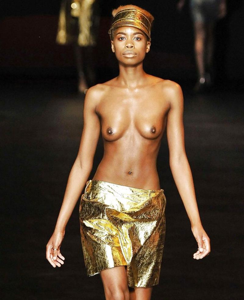 Девушки, представленные на фотографиях из этой фотосессии, любят принимать участие в разных эротичных мероприятиях, на которых им нередко приходится демонстрировать свои груди. И вот красотки в очередной раз захотели устроить модный показ и продемонстрируют идеальные тела во всей красоте. Особенно среди всех сучек выделилась негритянка, одевшая на себя необычным способом светленький гламурный купальник, чтобы он раскрывал ее груди.