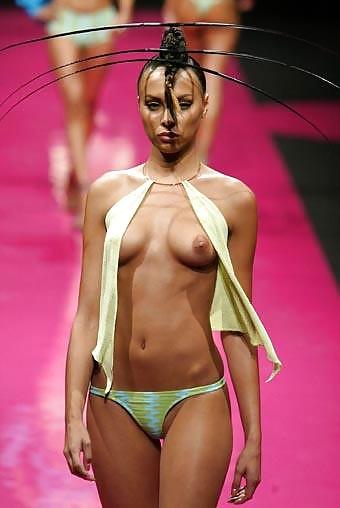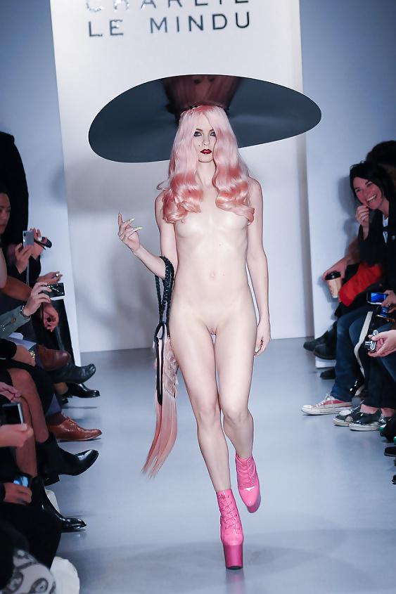 Обнаженные красотки, которые крутятся в модельном бизнесе, предпочитают показывать свои тела на публике. И сегодня вы увидите раскрепощенных моделей, которые развратничают на подиуме. Особенно эффектно выглядит сексуальная длинноволосая деваха, которая однажды открыла один модный показ, выйдя в эффектной шляпе с сумочкой и в туфлях на высоком каблуке. Именно в таком образе она себя чувствовала очень уверенно.