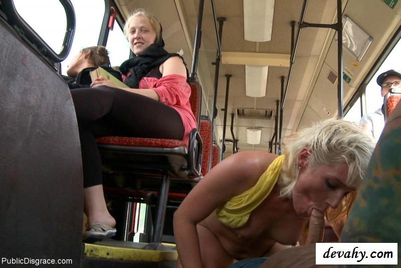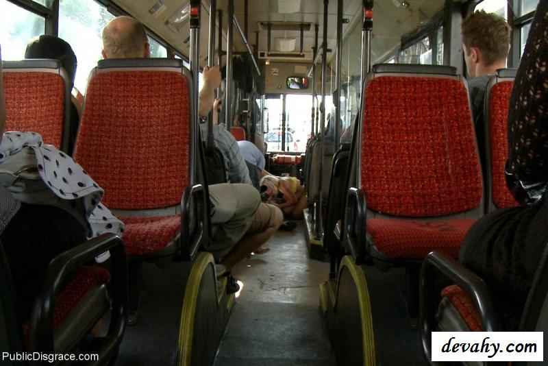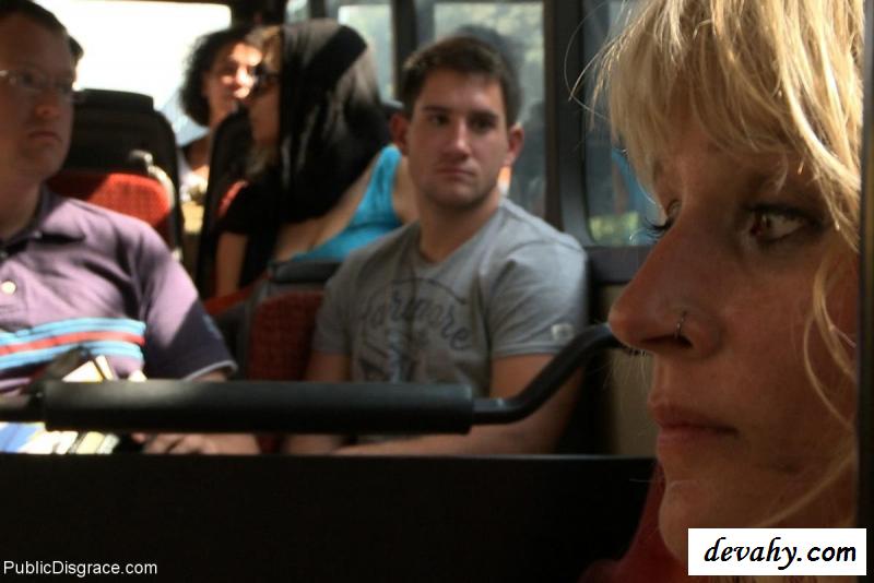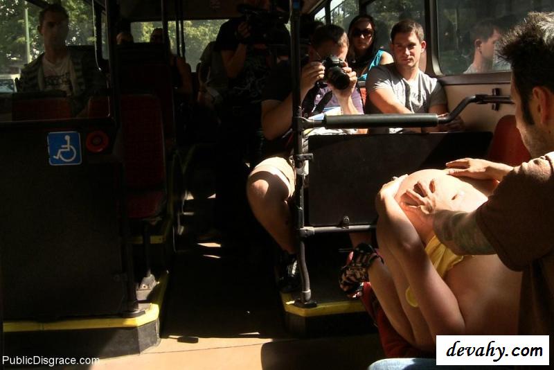 Эта обнаженная блондинка безумно любит, как над ней издеваются на публике и вот однажды она согласилась проехаться в общественном транспорте, где сидели одни извращенцы. И вот теперь сучку унижают прямо в автобусе все люди. Сначала к ней пристал мужик, который начал шлепать по ее заднице плеткой и раздвигать девице булки, чтобы рассмотреть ее глубокий рабочий анус. А второй при этом подобрался к ее лицу и заставил развратницу сосать хер.