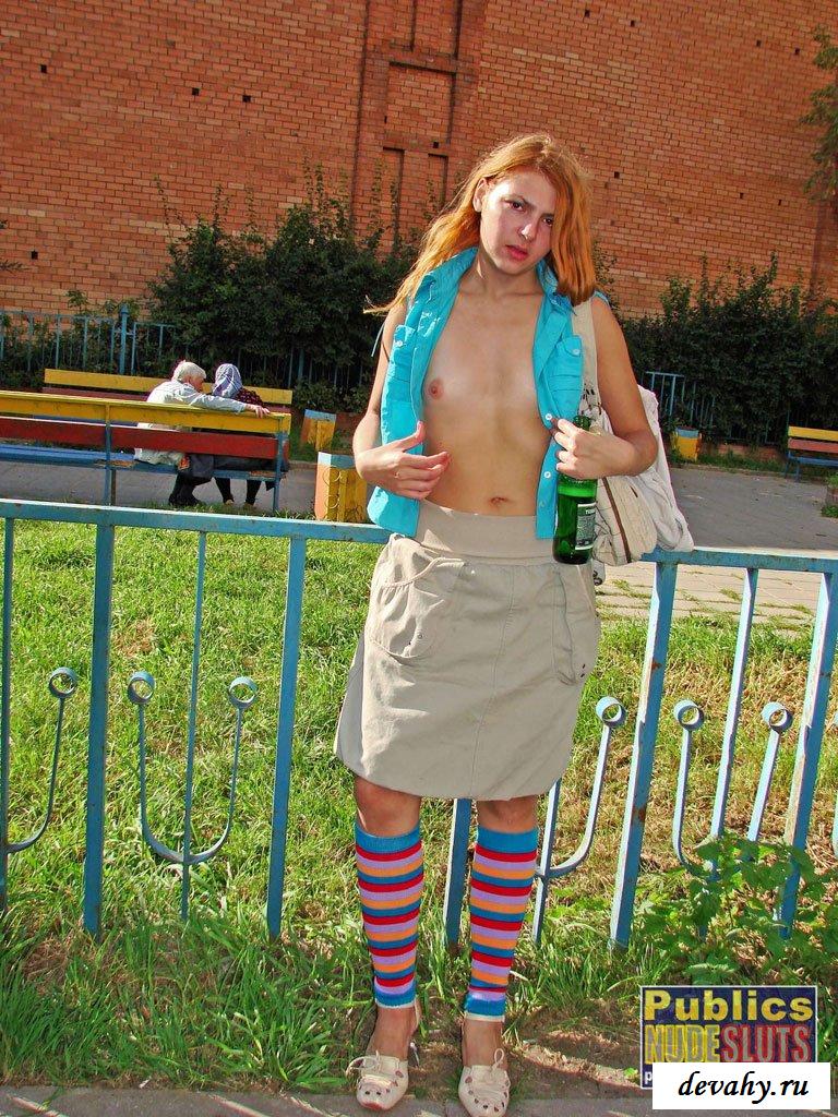 Обязательно нужно взглянуть, как девушка голая на улице пошло забавится, стараясь сексуально привлечь к своей горячей персоне, как можно больше мужчин. Конечно, парням нравится любоваться на обольстительные интимные прелести притягательной куколки, особенно в обнажённом облике. Поэтому, когда раздетая цыпочка светит сиськами, а затем задирает коротенькую юбчонку и хвастается отменными гениталиями, то возбуждение приходит моментально, благодаря клёвым прелестям синьорины.