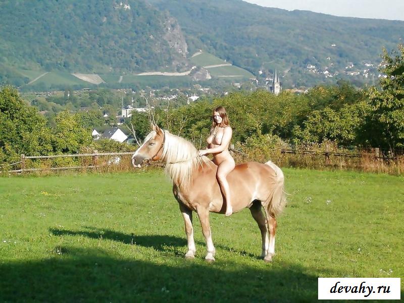 Многие современные телочки любят косить под привлекательных амазонок, придавая своему образу неповторимости и дикости. И вот сегодня обнаженные наездницы оголяются верхом и показывают свои различные интимные прелести. На большинстве снимков видны длинноногие телки с идеальными фигурами, решившие расслабиться на природе. Особенно красиво смотрится привлекательная брюнетка на белом коне, которая зашла на нем в море прямо на закате и выгибается, чтобы была видна вся красота ее грудей.