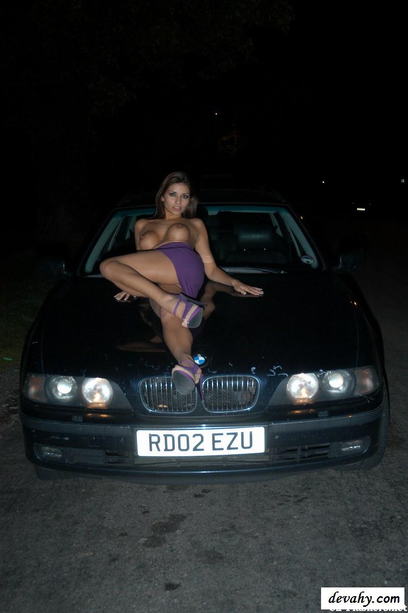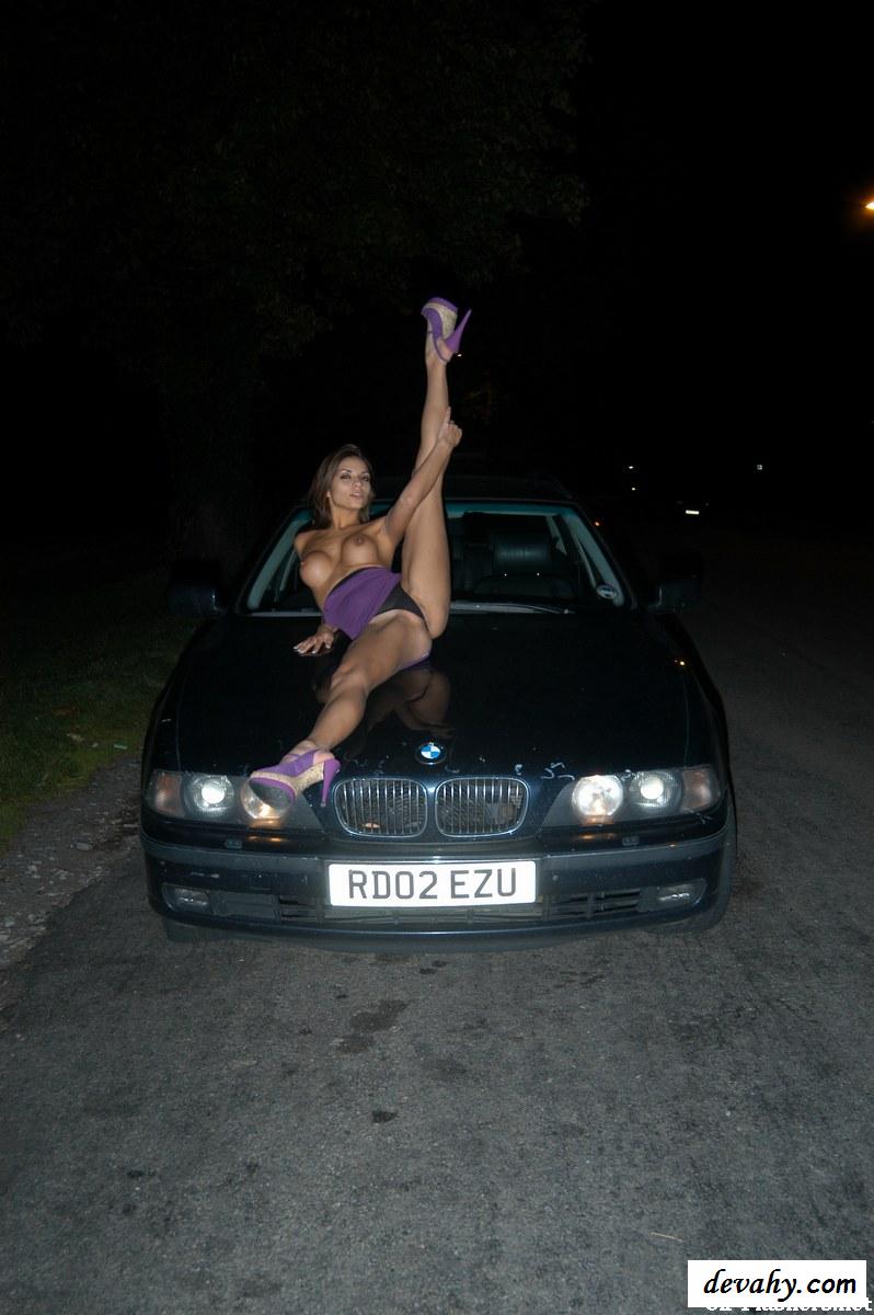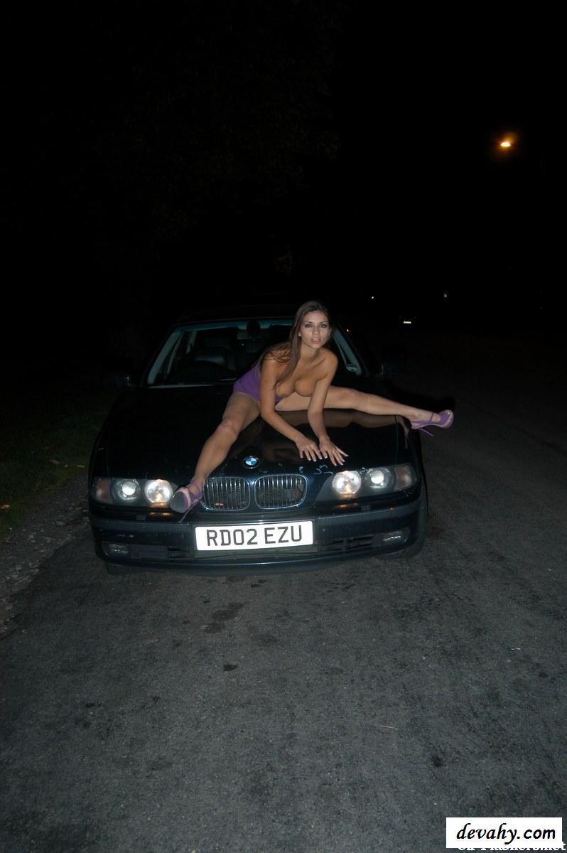 Голая кокетка повелась на старенькую иномарку и поэтому отправилась с клуба ночью домой с одним незнакомцем. И когда она вместе с ним оказалась за городом, то сразу же раздвинула ноги на капоте БМВ и от этого безумно перевозбудилась. Но перед этим шикарная девица слегка спустила свое платье, чтобы открыть титьки и показать отличные тонкие ножки, стоя в туфлях на высоком сиреневом каблуке. И можно сказать, что эту ночь сексапильная девушка и ее водитель провели отлично.