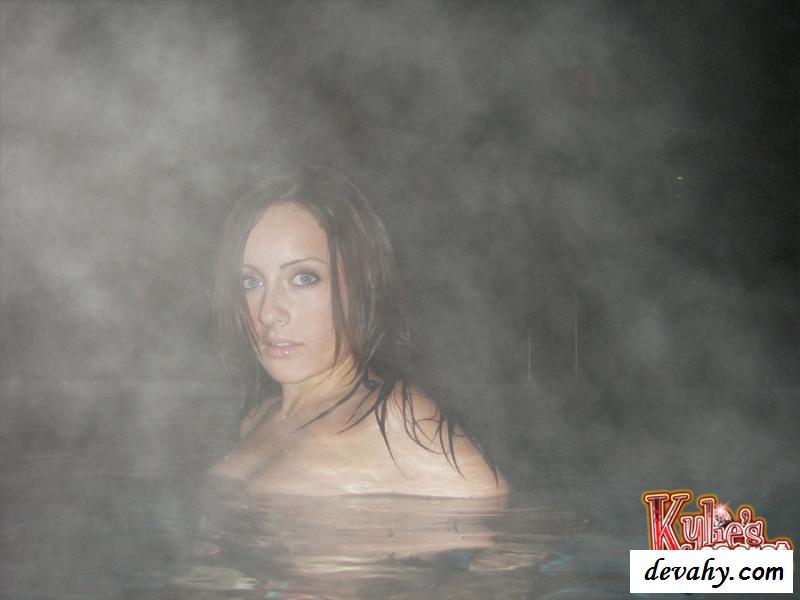 Раздетая молодуха однажды вечером решила отлично провести время у себя в бассейне, где она предварительно нагрела воду. И вот теперь устроив ночные купания, шикарная телочка стала постепенно снимать свой купальник под водой, в результате чего сучка не только засветила свой пирсинг на пупке, но и остальные интимные части своего роскошного тела, которые до этого момента старалась скрывать от всех. И можно сказать, что без трусов эта девица выглядела еще лучше.
