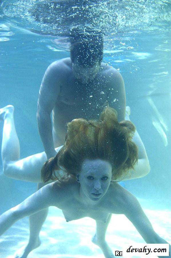 Сексуальная рыжая телка однажды попала на вечеринку, где многие мужики захотели понаблюдать ее полностью голой. И один из них заплатил больше всех денег, чтобы иметь возможность трахнуть эту красавицу под водой. И вот теперь кудрявый парень получил право снять с девицы шортики и остальное нижнее белье. А когда они оказались прямо в бассейне, то он сначала отлизал ее киску, а затем воткнул в мягкую вагину сучки твердый пенис, а затем отсосала у парня.