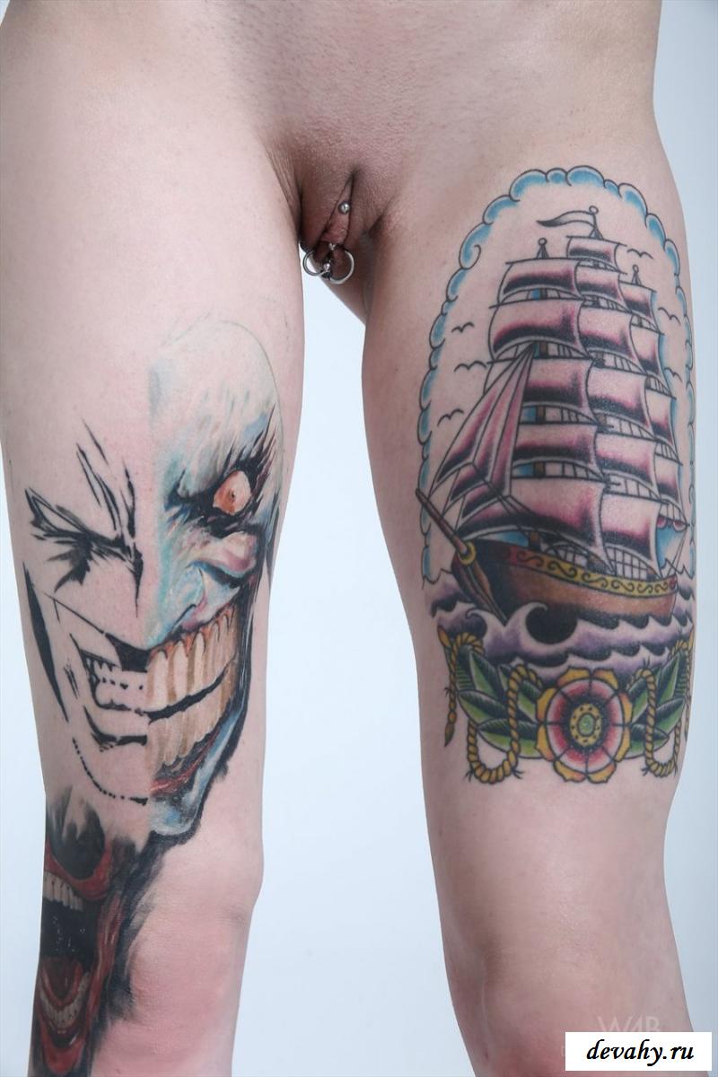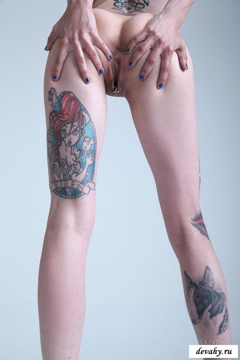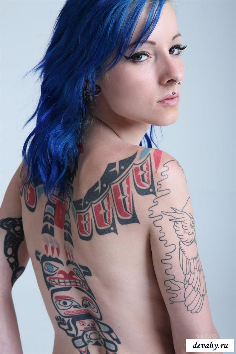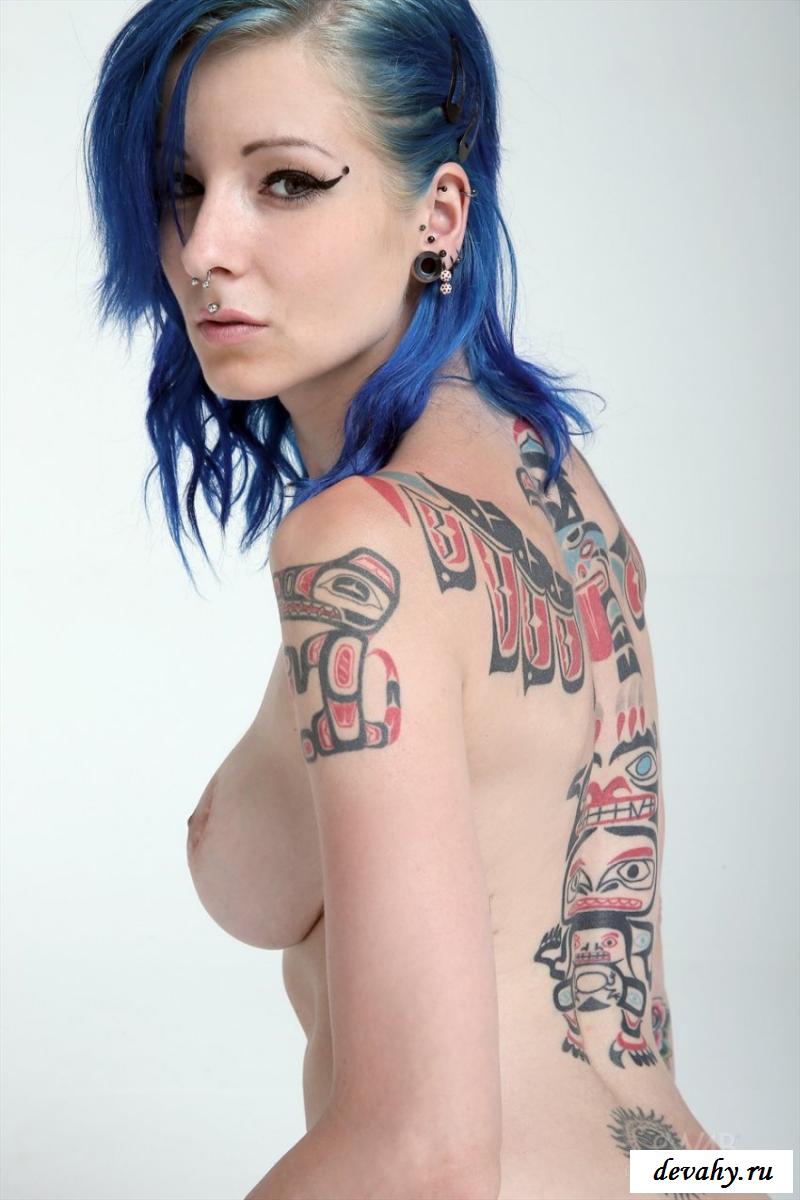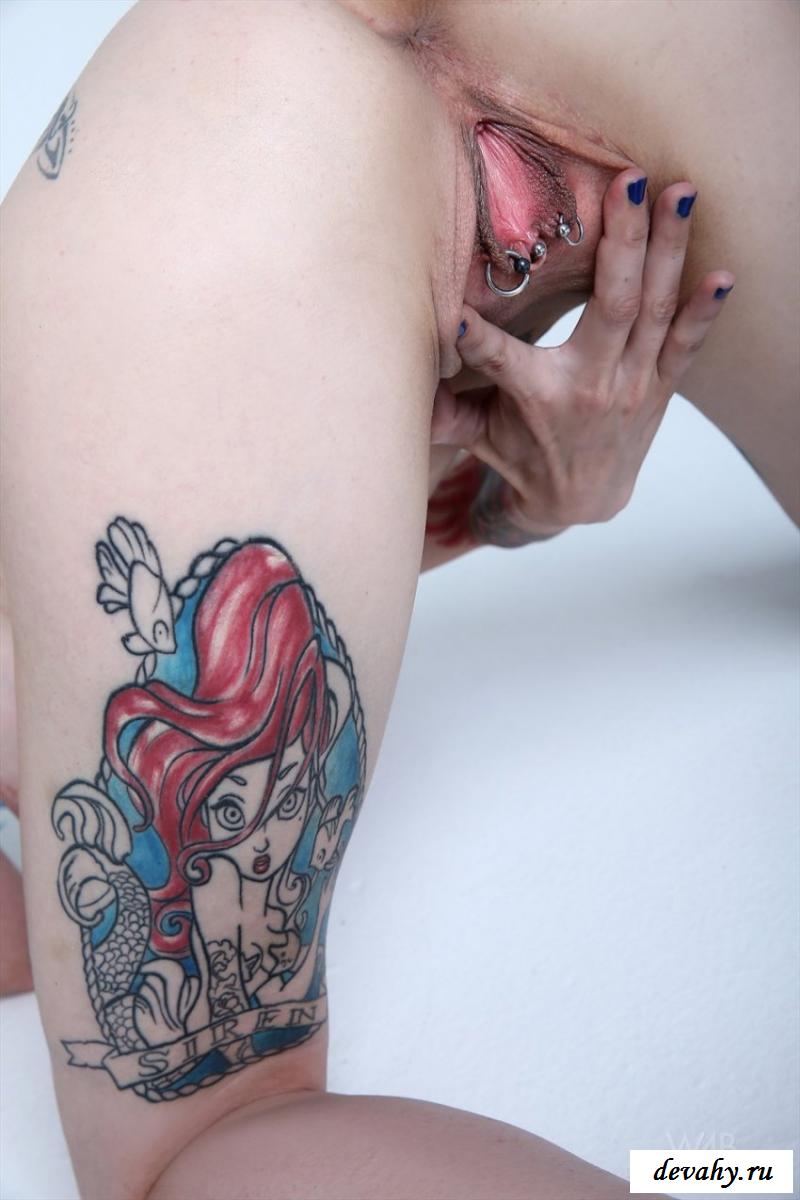 Страстная неформалка собралась удивить мужиков, показав своё украшенное пирсингом голое тело. Особенно сексуально смотрится манда милашки, с кольцом на половых губах. Вот леди с голубыми волосами и щедро демонстрирует роскошность фигуры, уделяя писечке особое внимание. Конечно же, барышня сфотографировалась в полный рост, дабы выделить аппетитные сиськи с проткнутыми сосочками. Это было лишь прелюдия, потому что очень скоро сучка стала делать фото восхитительной киски, причем – крупным планом. Она настолько возбудилась, что стала дергать за кольца в пизденке, раздвигая, таким образом, половые губки. Барышня отлично знает, что мужики очень хотят с ней секса, что только больше возбуждает похотливую особу.