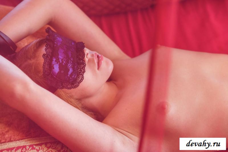 Тёлочка связала руки тканевыми кольцами и обнажилась