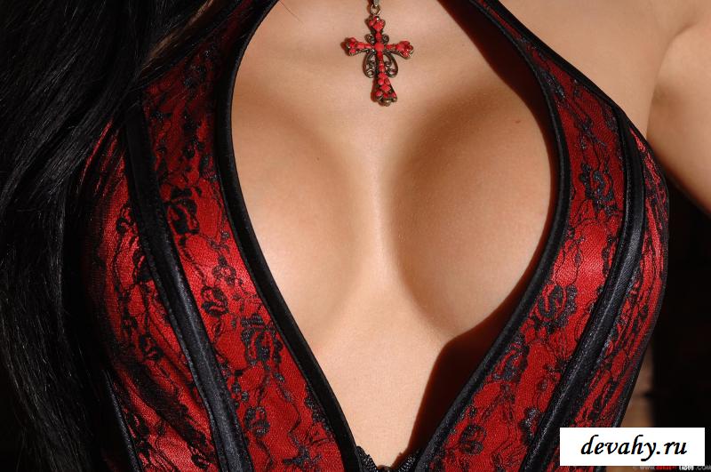 Очень сексуальная брюнетка устроилась у камина в полуобнаженном виде. Всё бы ничего, но знойная дама сковала себя по рукам и ногам. Красавице самой очень нравится представать в образе рабыни. Когда она приковала себя к камину наручниками, то хотела намекнуть всем мужчинам о том, что не хочет свободы. Брюнеточка в эротичном корсете, подчёркивающим её сочные сиськи буквально ждёт, чтобы кто-нибудь пришёл и высвободил её из этого рабства одиночества. Милашке явно нужен хороший секс, который она непременно получит с помощью этих фотографий. Сквозь прозрачную юбочку отлично видны соблазнительные трусики красотки, а она совсем не прочь их снять для какого-нибудь мужика. Каким-то чудом милашке удаётся стащить труселя, и она выдаёт через них голую киску, так и просящуюся на ласки. Чулки элегантно обтягивают шикарные ножки, заставляя любоваться ими снова и снова.