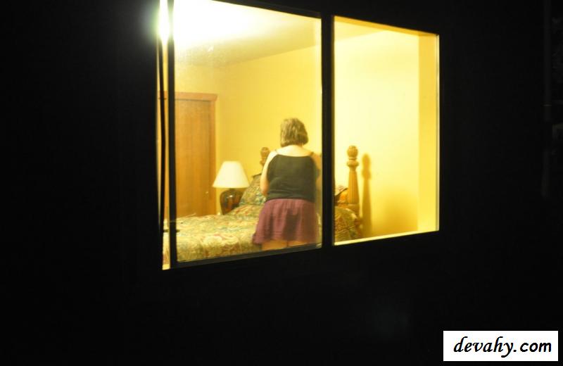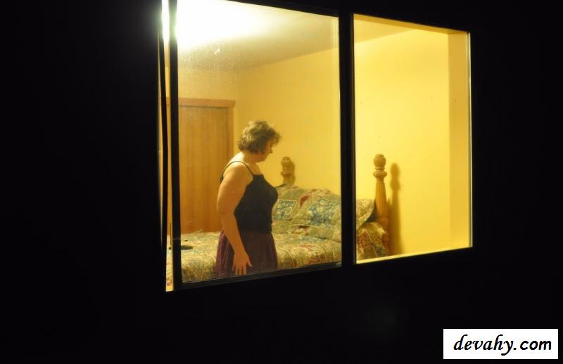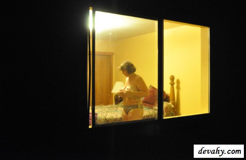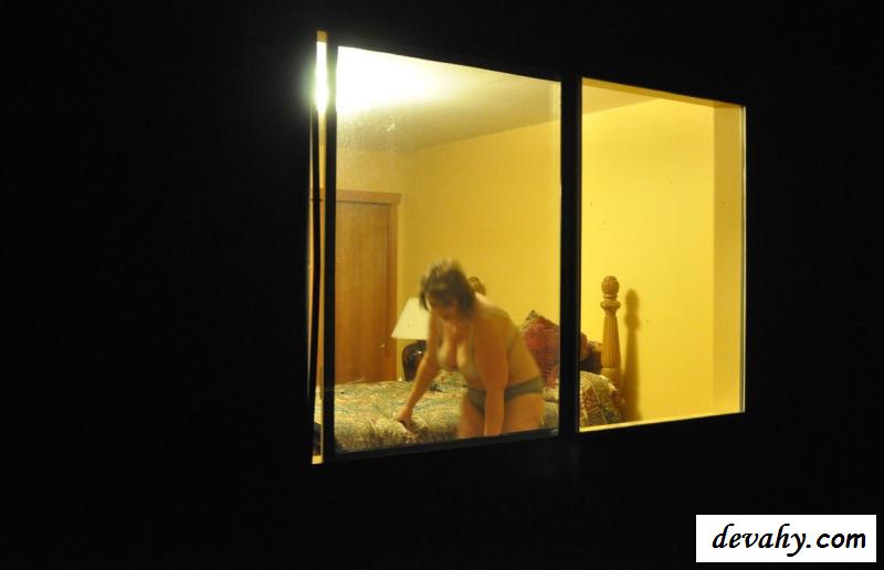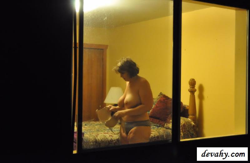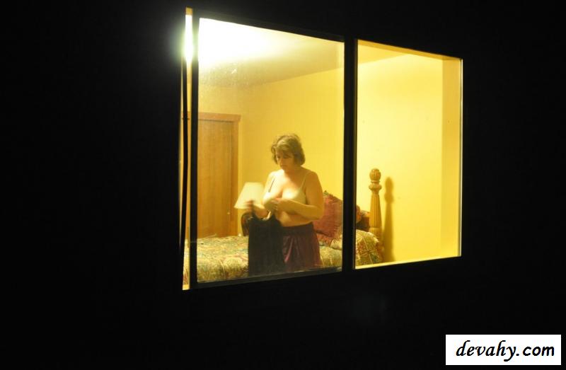 Мужик из соседнего дома стал замечать, что женщина из квартиры напротив очень часто мастурбирует в окне в своей спальне и не закрывает шторы. И вот когда голая тетка в очередной раз занималась самоудовлетворением, он включил камеру и начал ночью ее снимать. Сначала она просто ходила по комнате и избавлялась от всей одежды, а когда она избавилась от трусов, то взобралась на широкую кровать, раздвинула ноги и стала удовлетворять себя овощем, который предварительно взяла на кухне.