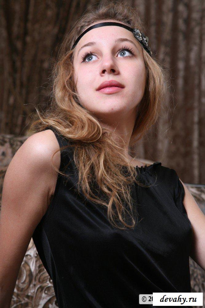 Девушка прекрасно осознает, что очень сексуальная, так что всегда рада доказать это себе и окружающим. Сладострастная красавица снимает номер в гостинце, дабы скинуть платьице и усладить себя голыми фотографиями. В отеле прелестнице стало так хорошо, что она моментально приступила к осуществлению задуманного. Она садится на кровать и с чувством вытягивает голые ноги. Далее милашка спускает бретельки платьица, доставляя эстетическое удовольствие видом голых сисек. Красоточка не преминула снять черные трусики тоже, чтобы помелькать шикарной киской, которая заслуживает всяческих наград и почетов.