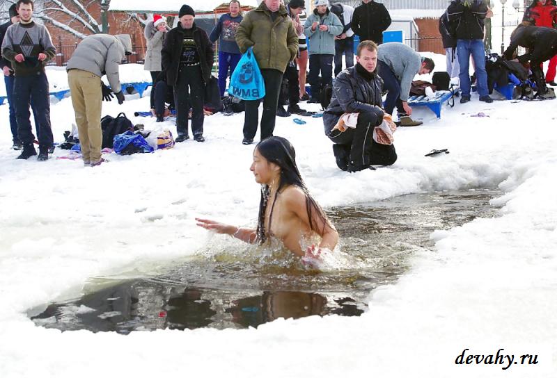 Как только наступает зимний период многие шалавы, чтобы подцепить себе очередного ухажера отправляются на реку, чтобы купаться в прорубе. В этой фотосессии будут собраны эротические снимки как раз таких веселых сучек, которые не стесняются оголяться на публике и демонстрировать себя во всей красе. Заходя в воду, многие из них стараются как можно дольше постоять, чтобы посторонние смогли насладиться их половыми органами, а затем они окунаются и прячутся в полотенце.