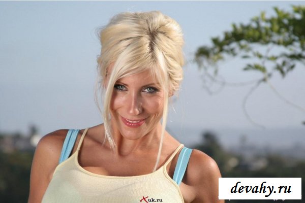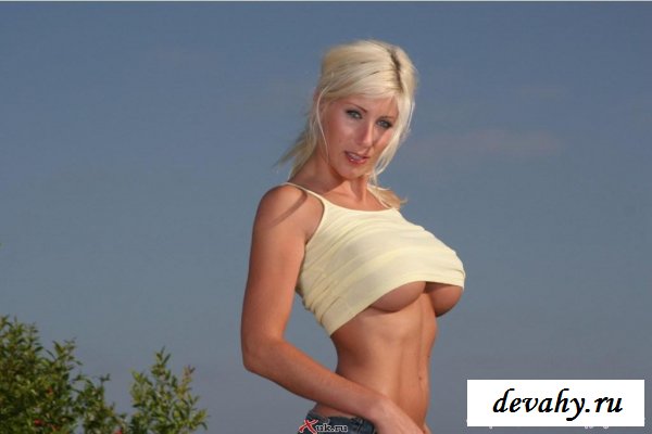 Спортивная блонди поражает нас своей красотой. Самое удивительное, что у нее и лицо секси и попка супер секс и сиськи такие большие, что ослепляют своим размером. Супер сладкая чикса с классной попой в шортиках позирует на улице своем другу. Она виляет ягодицами и выставляет длинные ножки и накачанные бедра в лучшем ракурсе. Детка уже так возбуждена, что приподняла майку и начинает мять груди. А ведь там еще одно препятствие - прикольный лифчик. Все уже думали увидеть ее сисяры, а тут облом!