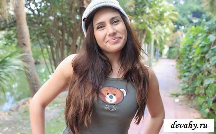 Эту красавицу легко встретить на любом отдыхе на каком-либо экзотическом острове океана, в коротеньких шортиках и без трусов эта девица сумеет молниеносно свести вас с ума и закрутить необычайный роман. Своим соблазном милашка в первую очередь обязана своему восхитительному телу, привлекательному лицу, и между ножек у девушки довольно прекрасная киска с огромными каштаново-розовыми губками, которую сможете рассмотреть когда она оттягивает в сторону шортики. Там все выбрито, с тщанием.