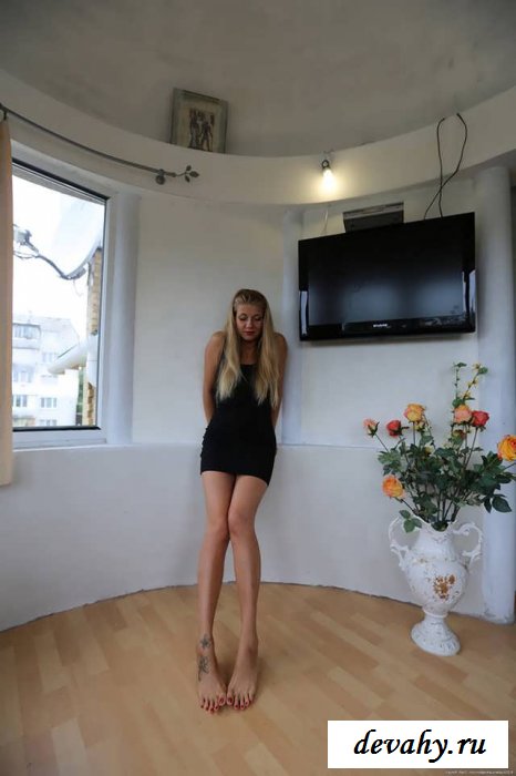Выходит, эти кадры будут предназначены для просмотра неуверенных самцов, которые все время переживают о том что их супруга изменяет им, и для тех возбуждает это и любят фантазировать на такую тему! Предлагаем представить - это гулящая ваша половика, которая именно в это время оказалась в номере отеля без трусов и в платье и скоро будет полностью обнаженная, причем поможет ей любовник. Подсмотрите как раздевается для него демонстрирует ножки, ступни, попу, даже анус с пилоткой.
