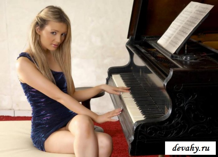Сегодня скромная светловолосая милашка возле рояля показала ценителям нежной эротики прелести девичьего. Ей нравятся взоры голодных парней, это ее хобби исполнять композиции строгом платье и без трусов. Ей нравится чувствовать свободу, когда ее безволосой письке ничего не мешает. Позы у блондинки вызывают только положительные эмоции, а мысль о выбритой киске не даст покоя. Сексуальная сучка с удовольствием раздвигает ножки и демонстрирует дырочки голодным парням, не забывая улыбаться и самой возбуждаться.
