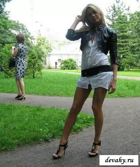 Эротичная блондинка фотографируется совсем в нескромном виде в парке. Распутная девица скромно села на лавочку и как бы невзначай начала демонстрировать свою пизду и жопку задирая юбку. У этой барышни довольно прекрасная попа и роскошная пизда с опрятными половыми губами. Видно как за ее спиной идут жених с невестой, молодожены не догадываются даже, что они попали на сексуальное шоу сучки без трусов. Не глядя на вокруг ходящих людей, ей даже раздеваться не надо, что бы соблазнить народ.