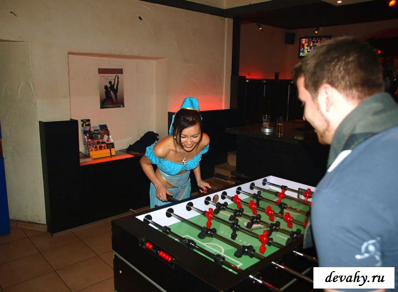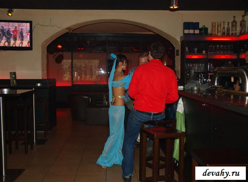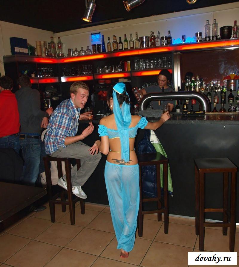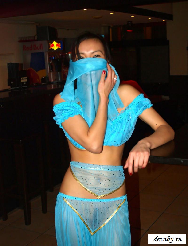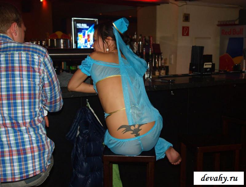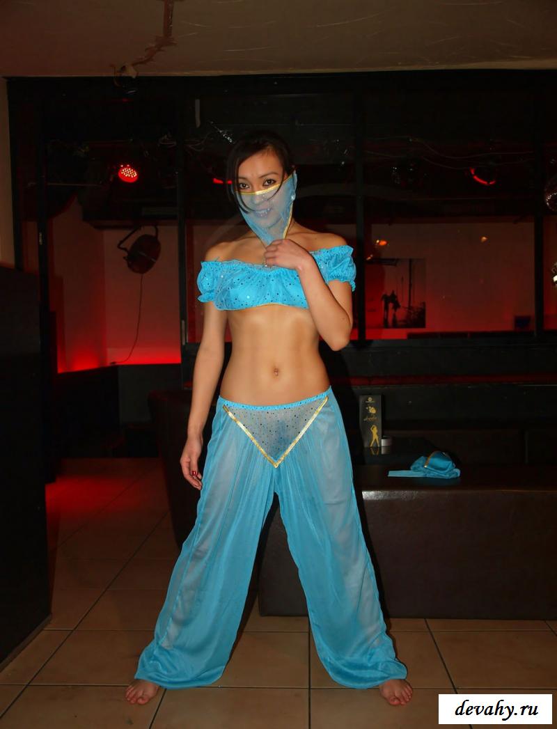 Молоденькая бурятка с милой внешностью решила удивить своих друзей и пришла в ночной клуб в прозрачных голубых штанах, через них была видна ее киска. Посидев немного у барной стойки, эта развратница и вовсе оголилась и стала, показывают шикарную обнаженную пизду, которая отлично смотрелась в различных ракурсах. Помимо влагалища она также стала демонстрировать и небольшие сиськи, которые в то же время смотрелись превосходно.