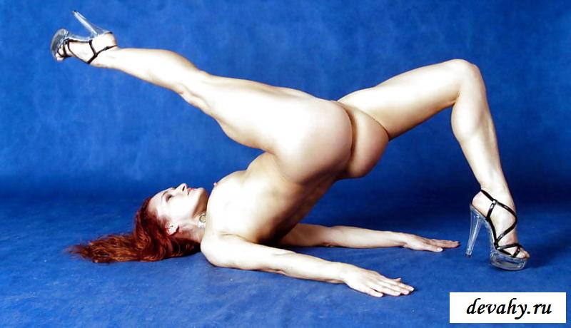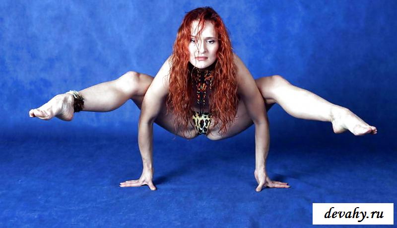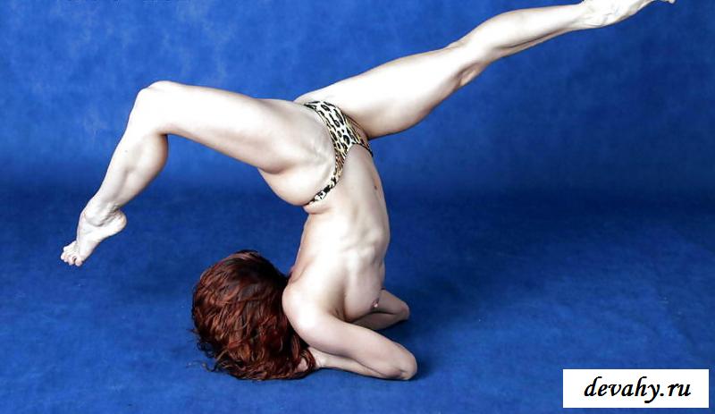 Голая рыженькая развратница с роскошным подтянутым телом использует свои навыки в интимных шалостях. Однажды эта деваха стала отлично выгибаться и изначально сучка делала это в купальнике, но затем ей захотелось избавиться от него. И когда она оказалась без белья, то стала всячески выворачиваться, выгибать ноги и выполнять другие действия, демонстрирующие ее гибкие части тела. Выполняя такие действия гибкая сильно возбуждается.