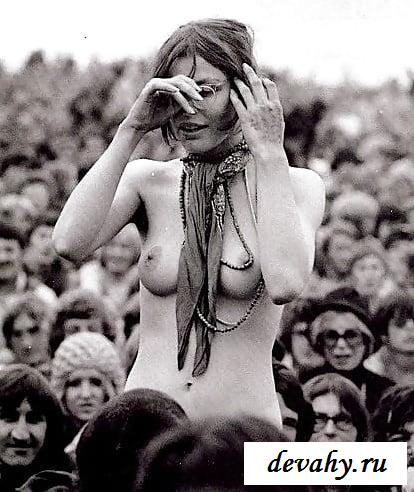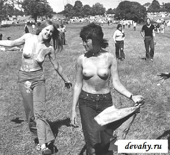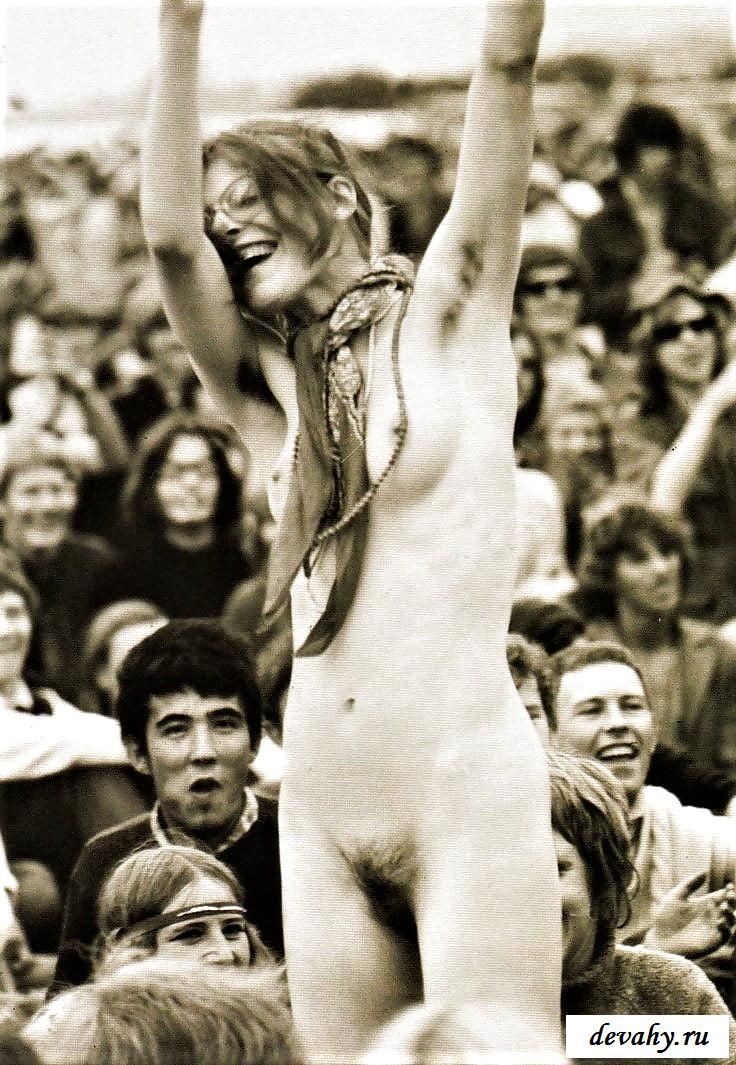 В этой новости вы сможете увидеть уникальные ретро-фотографии развратных сучек из шестидесятых годов прошлого века. Эти обнаженные хиппи зародили новое движение за свободу, в котором приветствовалось оголяться и размножаться прямо на публике. Многие сучки не стеснялись это делать на глазах у многочисленных зрителях. И поэтому мы можем видеть, как развратная очкаричка на фестивале позирует с голыми титьками и подпрыгивает перед мужиками.