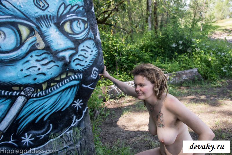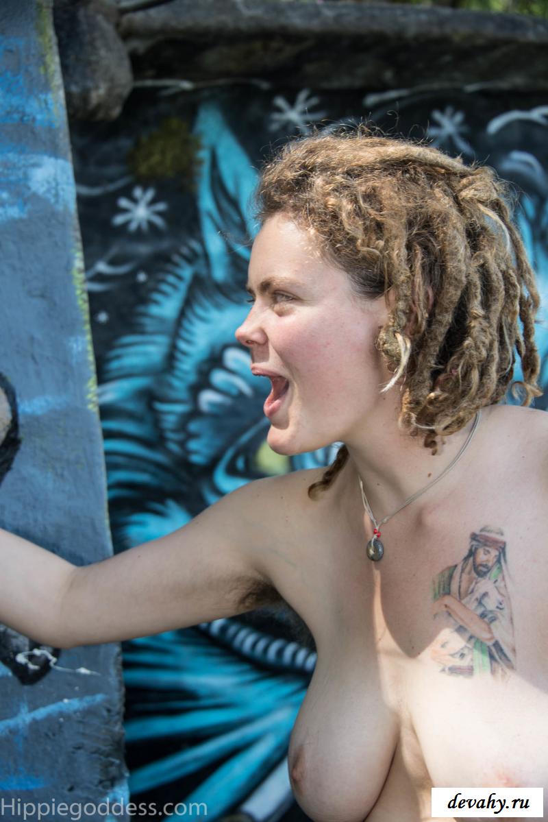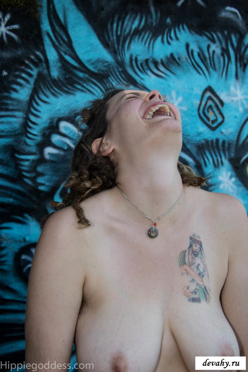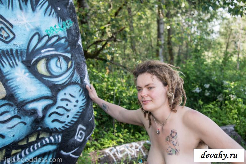 Эта девушка своей внешностью старается копировать хиппи, которые так были популярны в шестидесятые годы прошлого века. И чтобы быть максимально схожей с теми девушками страшненькая обнаженная старается постоянно оголяться. Также она никогда не брила свою киску, что стает сразу видно даже когда сучка стоит в трусах и еще не собирается раздеваться. Но как только она спустила трусики, то сразу же стало понятно, что ее кожи никогда не касалась бритва.