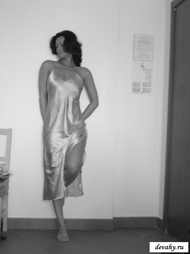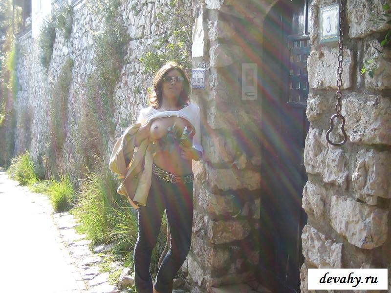 Зрелая итальянка с привлекательным голым телом однажды прямо у себя дома стала демонстрировать интимные места во всей красе. Неаполитанка в домашней обстановке для этого стала у стеклянной двери и начала крутить маленьким задком, после чего повернулась к объективу камеры и стала светить маленькими грудями, которые еще лучше украшали ее и без этого сексуальный образ. Помимо своей квартиры она любит сниматься и на природе прямо, когда на нее смотрят незнакомые прохожие.