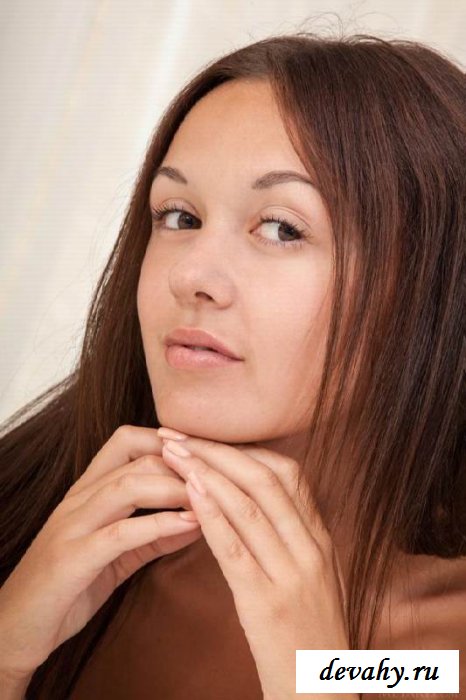 Симпатичная брюнетка с красивыми глазами в одних только трусиках позирует возле окна, а потом и на постели и совсем скоро их снимает. Ее потрясающее тело с шоколадным красивым загаром смотрится невероятно офигенно на фоне белых простыней. Видно, красавица загорала не голышом, так как на маленьких сиськах и попке белые следы от купальника.. Крошечка раздвигает ноги и Вы наслаждаемся видом потрясающей голой писи, аккуратные половые губки и розовый клитор, с колечком анусу супер выглядят.